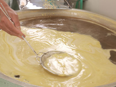私どもでは、水は一切加えず、土佐自慢のしょうがの生絞りと、各種の砂糖類、水あめをブレンドし、一釜一釜手作りで心を込めて炊き上げました。